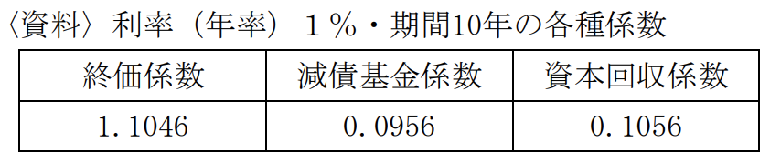 元金2,000万円を、利率(年率)1%で複利運用しながら10年にわたって毎年均等に取り崩して受け取る場合、毎年の受取金額は、下記〈資料〉の係数を使用して算出すると( )となる。