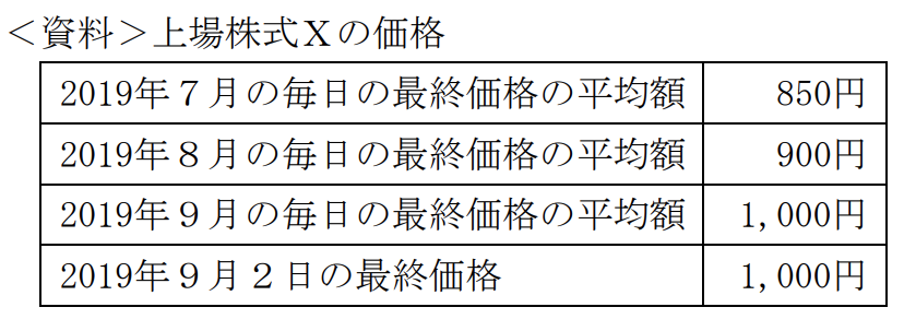 2019年9月2日に死亡したAさんが所有していた上場株式Xを相続により取得した場合の1株当たりの相続税評価額は、下記の<資料>によれば、( )である。