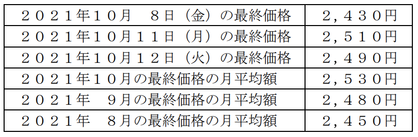 2021年10月11日(月)に死亡した被相続人が保有していた上場株式の1株当たりの相続税評価額として、最も適切なものはどれか。なお、記載のない事項については考慮しないものとする。
