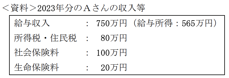 Aさんの2023年分の可処分所得の金額は、下記の<資料>によれば、( )である。