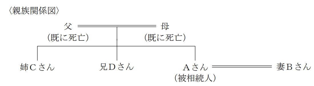 下記の〈親族関係図〉において、Aさんの相続における妻Bさんの法定相続分は、( )である。なお、Aさんの父母は、Aさんの相続開始前に死亡している。