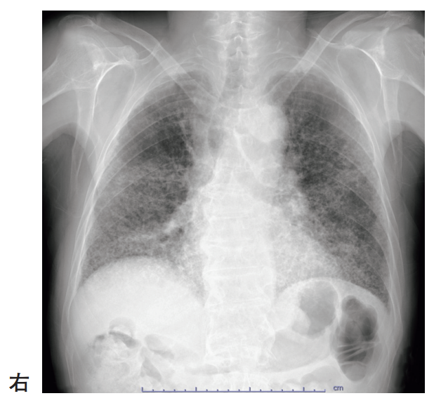 73歳の女性。胸部単純エックス線写真を別に示す。