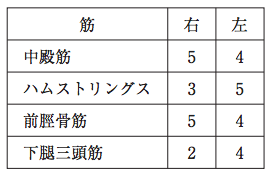 Daniels らの徒手筋力テストの結果を表に示す。表以外の筋に異常はみられない。関節可動域はすべて正常範囲である。